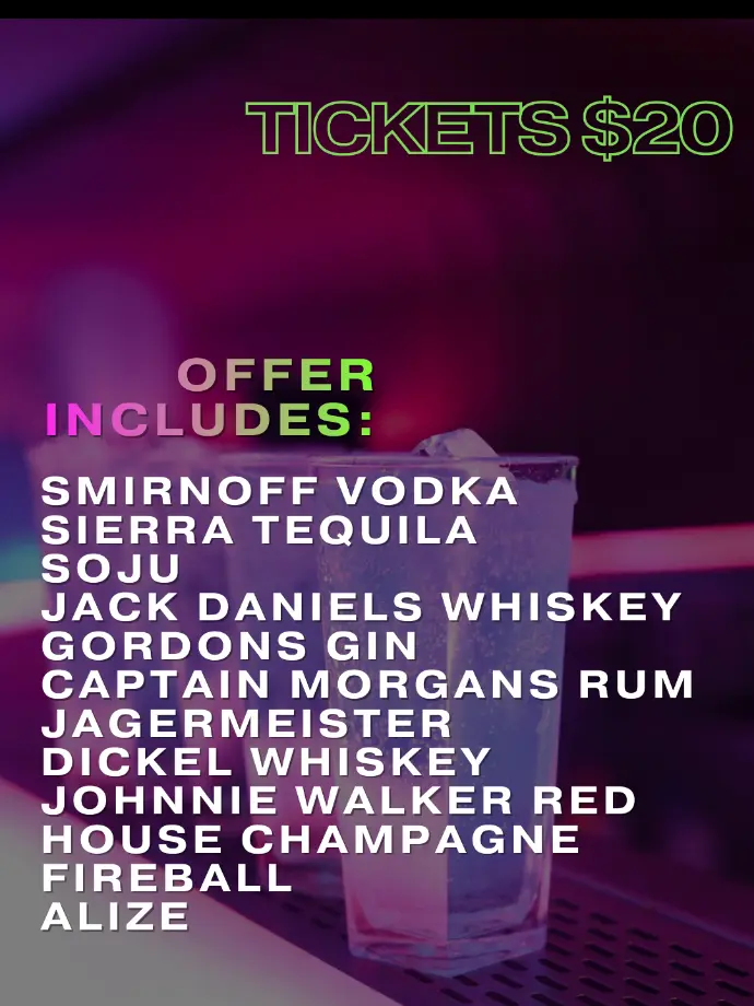 Smirnoff Vodka • Sierra Tequila • Soju (any flavour) • Jack Daniel’s Whiskey • Captain Morgan’s Rum • Jagermeister • Dickel Whiskey • Johnnie Walker Red • House Champagne • Fireball • Alize & more!